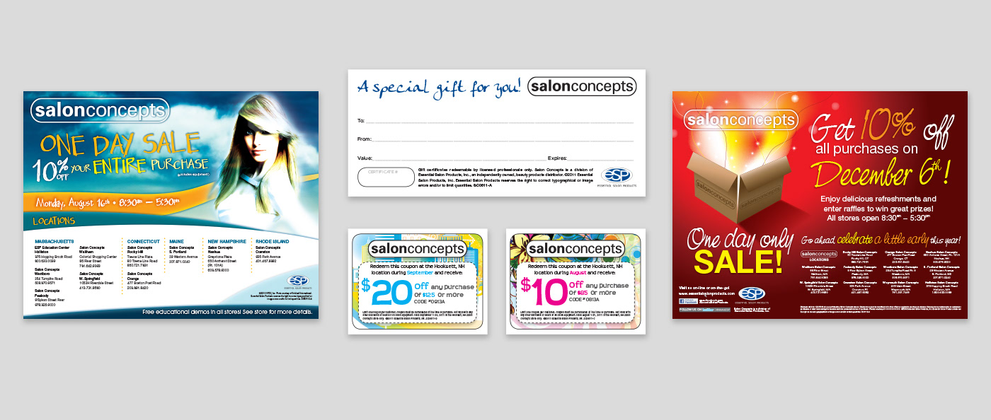 Print and email marketing and design for a full service beauty supply distribution and education company that was based in Holliston, MA.