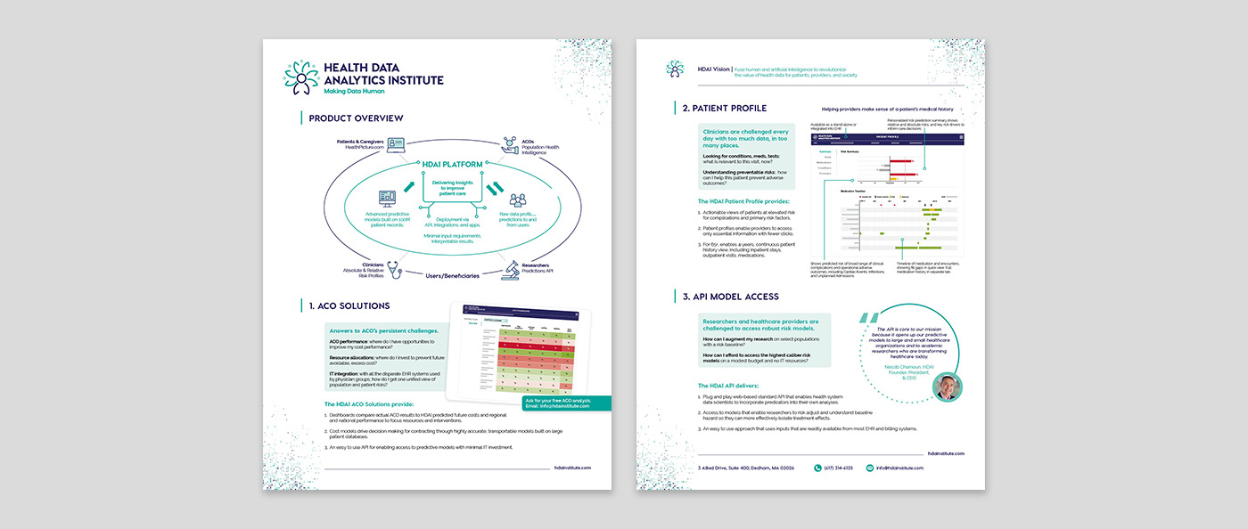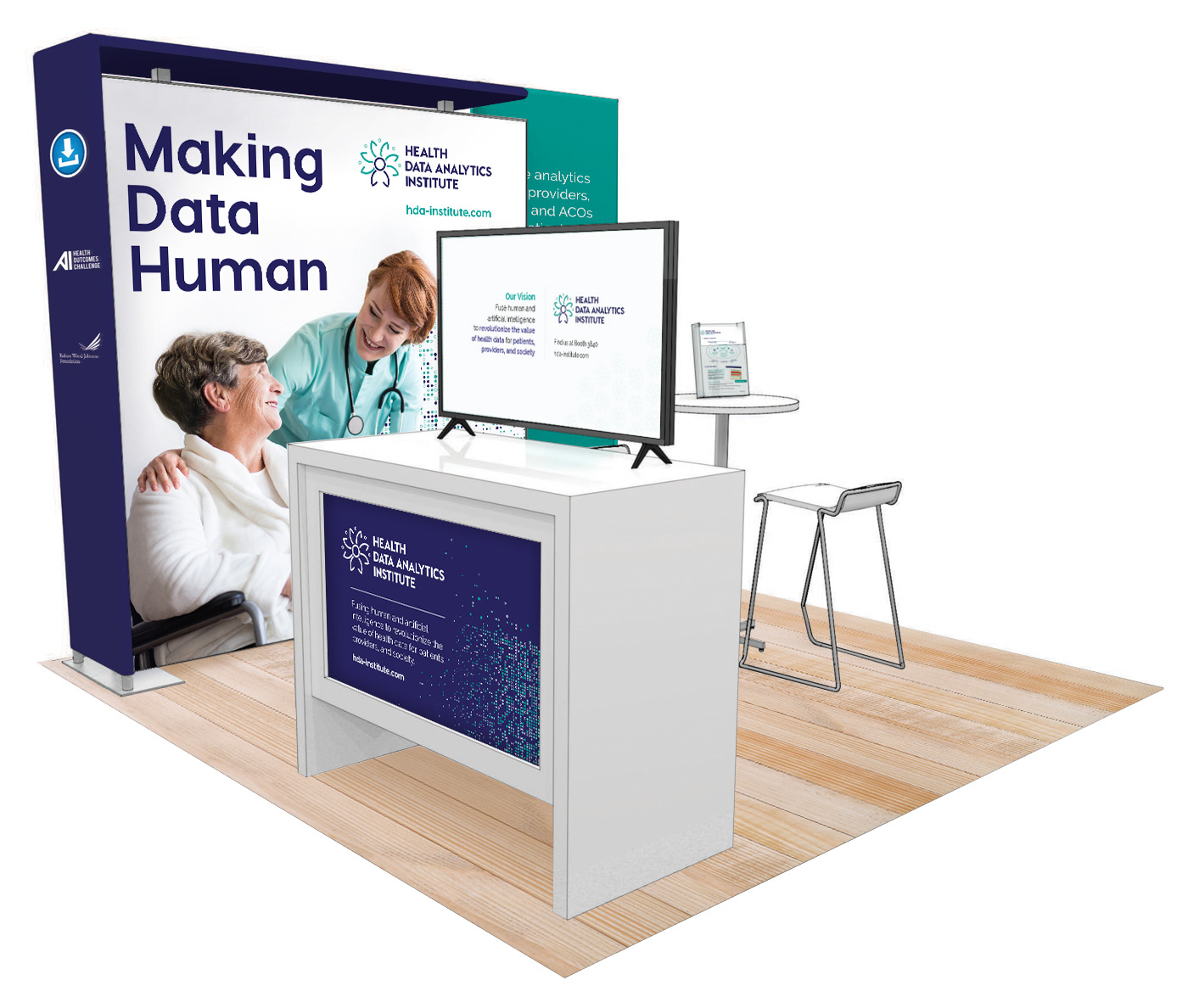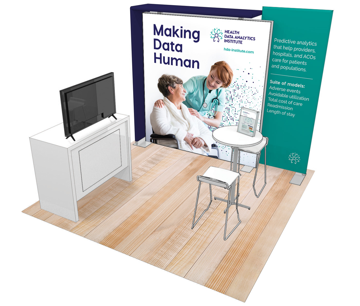 Event booth design and marketing materials for a predictive analytics startup in Dedham, MA, that develops quantitative solutions to interpret health care data.