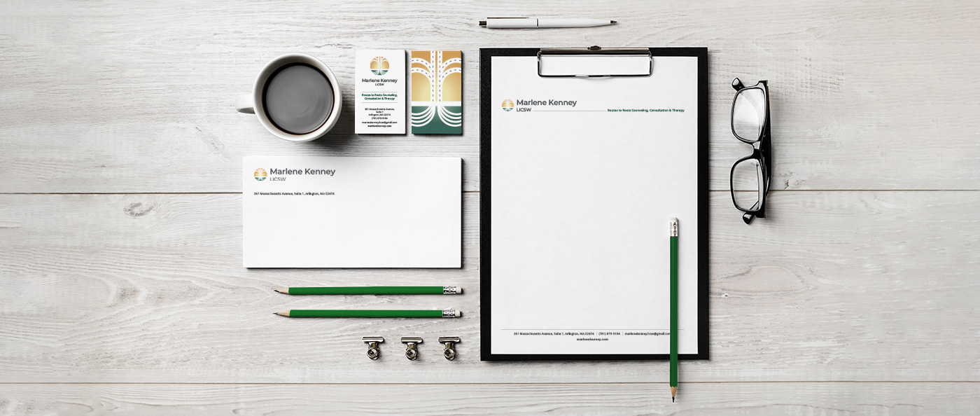 Branding, business collateral, and presentation templates and support for an EMDR trauma therapist in Arlington, MA.